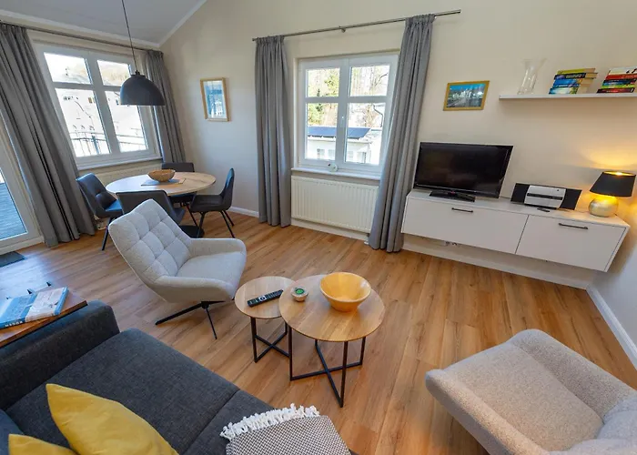 Villa Seerose - Appartement 11 konukları, Sellin şehrinde ve çevresinde yürüyüş, binicilik, bisiklet gibi etkinliklerin tadını çıkarabilirler. Bu daire Tarihi Binz Müzesi'a 7 km ve Baltık Denizi Beldesi Göhren'de Amber Sahil Gezinti Yolu'a 4 km uzaklıktadır.